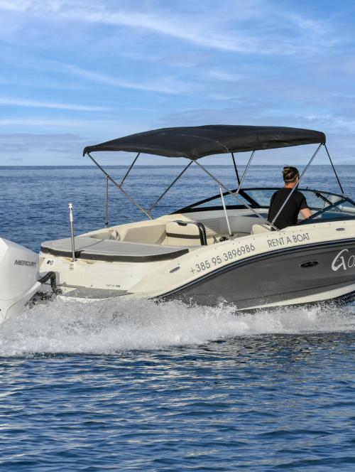 Boat license REQUIRED. Without a license you can rent it with a skipper (extra 15€/h).